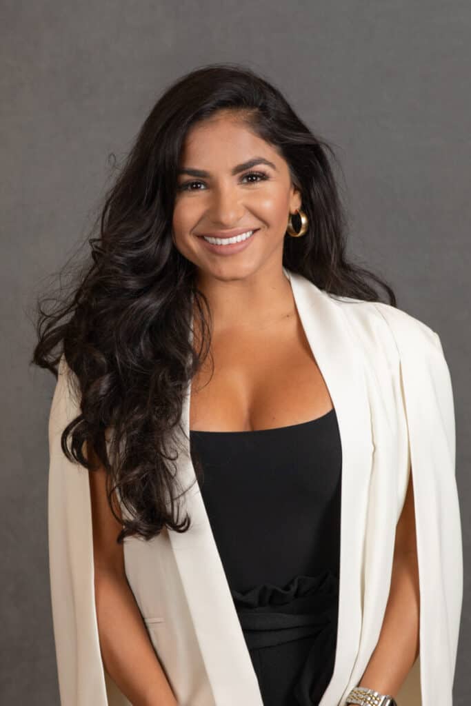 Most of us feel semi-awkward in front of a camera, right? So how do you relax and get that natural look? I coach clients to try to look at the camera the same way you’d greet a client. Literally imagine a client’s face and pretend you’re saying hello! Sometimes that’s all it takes to bring out a warm, winning smile and relax your face for the shot.