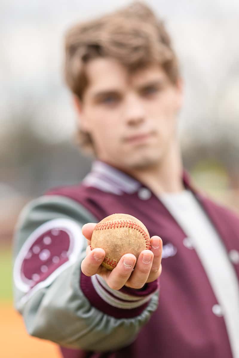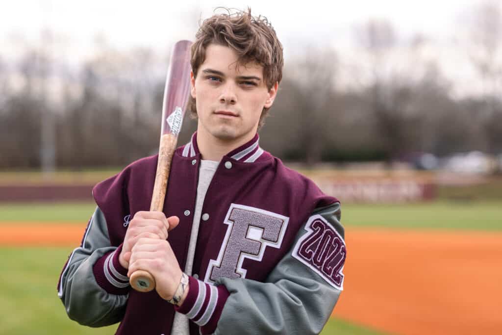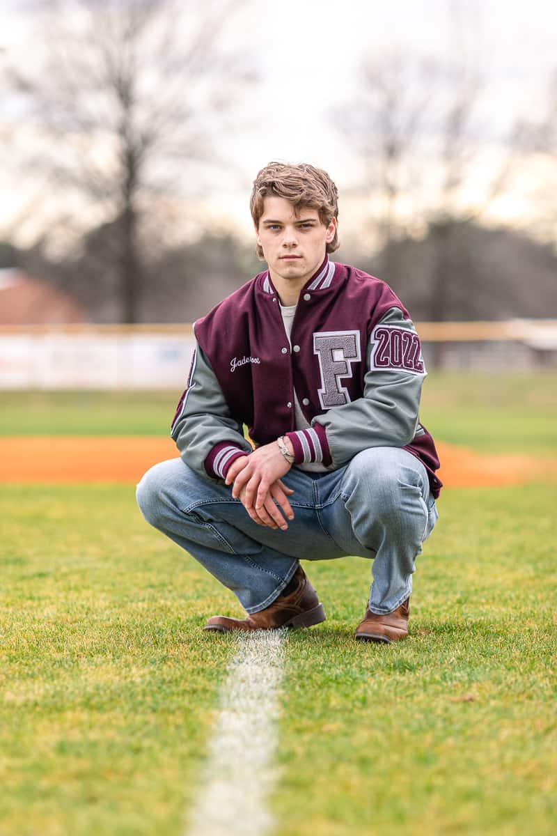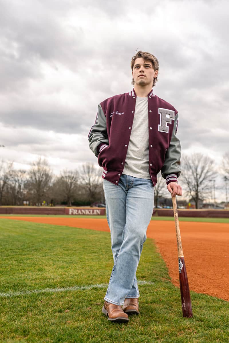 We planned two locations for his senior shoot. And since Jaden’s senior year passion (aside from graduating) was baseball, we planned to make that a key feature. After capturing some amazing portraits against the backdrop of the beautiful fields at Harlinsdale Farm, we headed over to the Franklin High School baseball diamond, where he felt most at home.